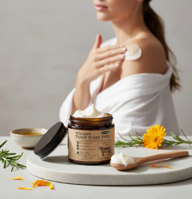 Made from 100% grass-fed, beef tallow, rich in vitamins and nutrients for deep nourishment, fast absorption, and gentle care.