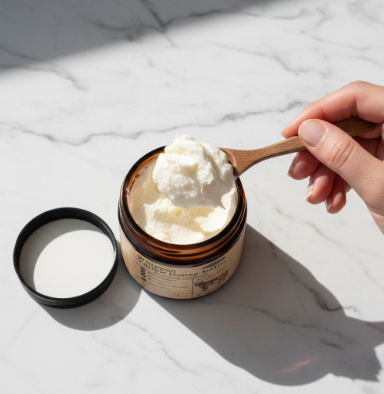 Scoop a small amount, rub it lightly between your hands, then gently massage onto clean skin for deep, lasting hydration.